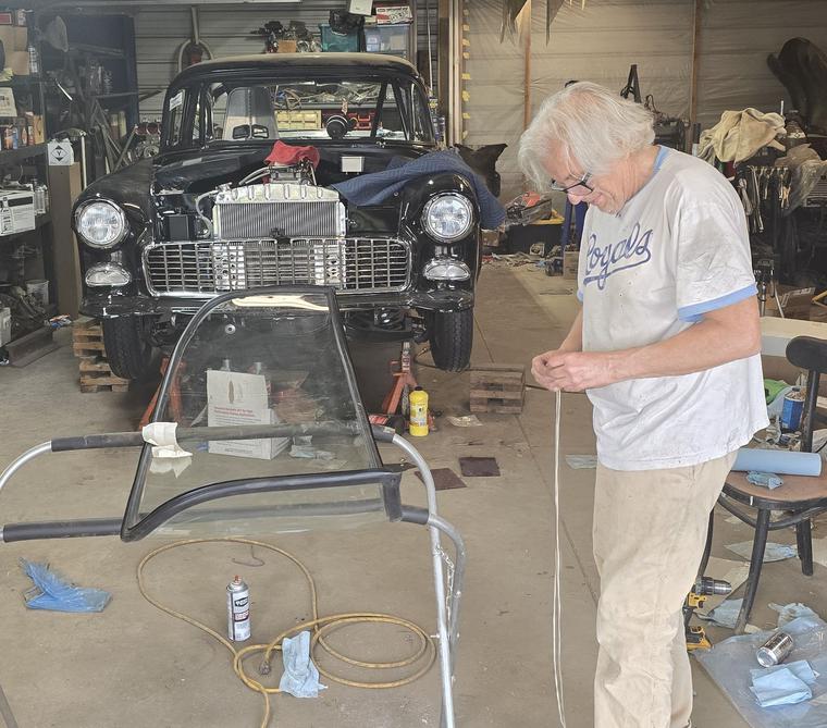 C.B. prepping rear glass!